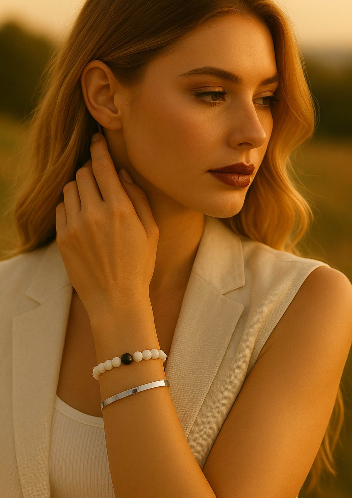 Jedes Armband wird von Hand gefertigt und aus sorgfältig polierten 8 mm Lapislazuli-Perlen komponiert. Ob einzeln getragen oder in Kombination – dieses Schmuckstück zieht Blicke auf sich und verleiht jedem Outfit eine edle Note.